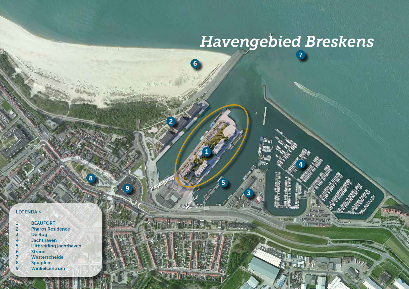Breskens trekt jaarlijks duizenden bezoekers: van strandliefhebbers en fietsers tot foodies en levensgenieters. Dankzij dit levendige toeristische karakter is het havengebied van Breskens de perfecte voedingsbodem voor ondernemingen in horeca, retail, recreatie en dienstverlening. Tel daarbij op de moderne jachthaven, de goede bereikbaarheid én de nabijheid van Gent, Brugge en Knokke en je begrijpt waarom dit een strategische plek is om te ondernemen.