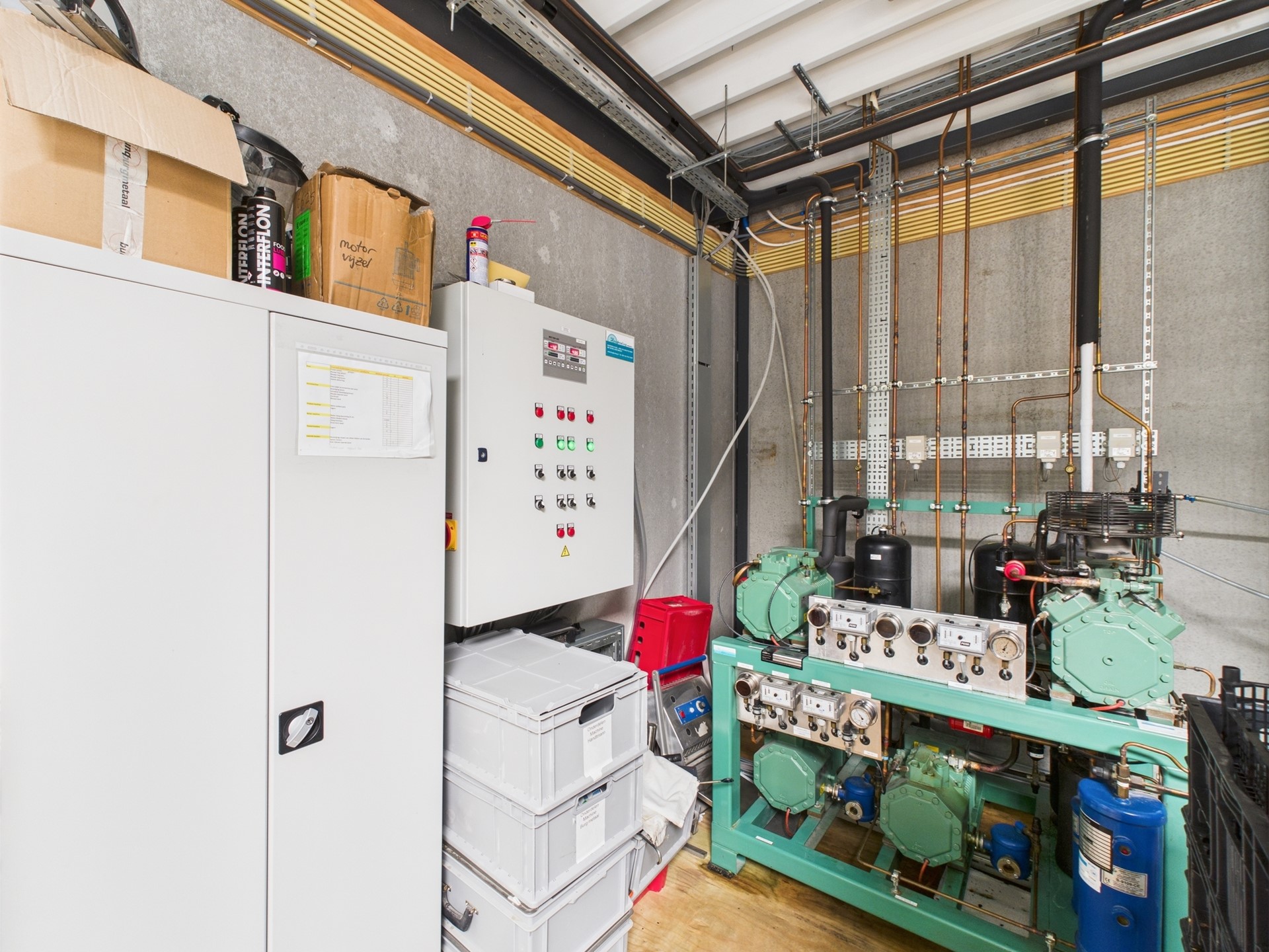 De unit is voorzien van een meterkast met 3 x 80 A aansluiting, wat ruime stroomcapaciteit biedt voor productieactiviteiten. Er is een koel-/vriescelcellenblok aanwezig, aangedreven door een Bitzer-compressoren. Daarnaast staat er een vriescontainer van Dawson Rentals, waarvoor een vergunning benodigd is.