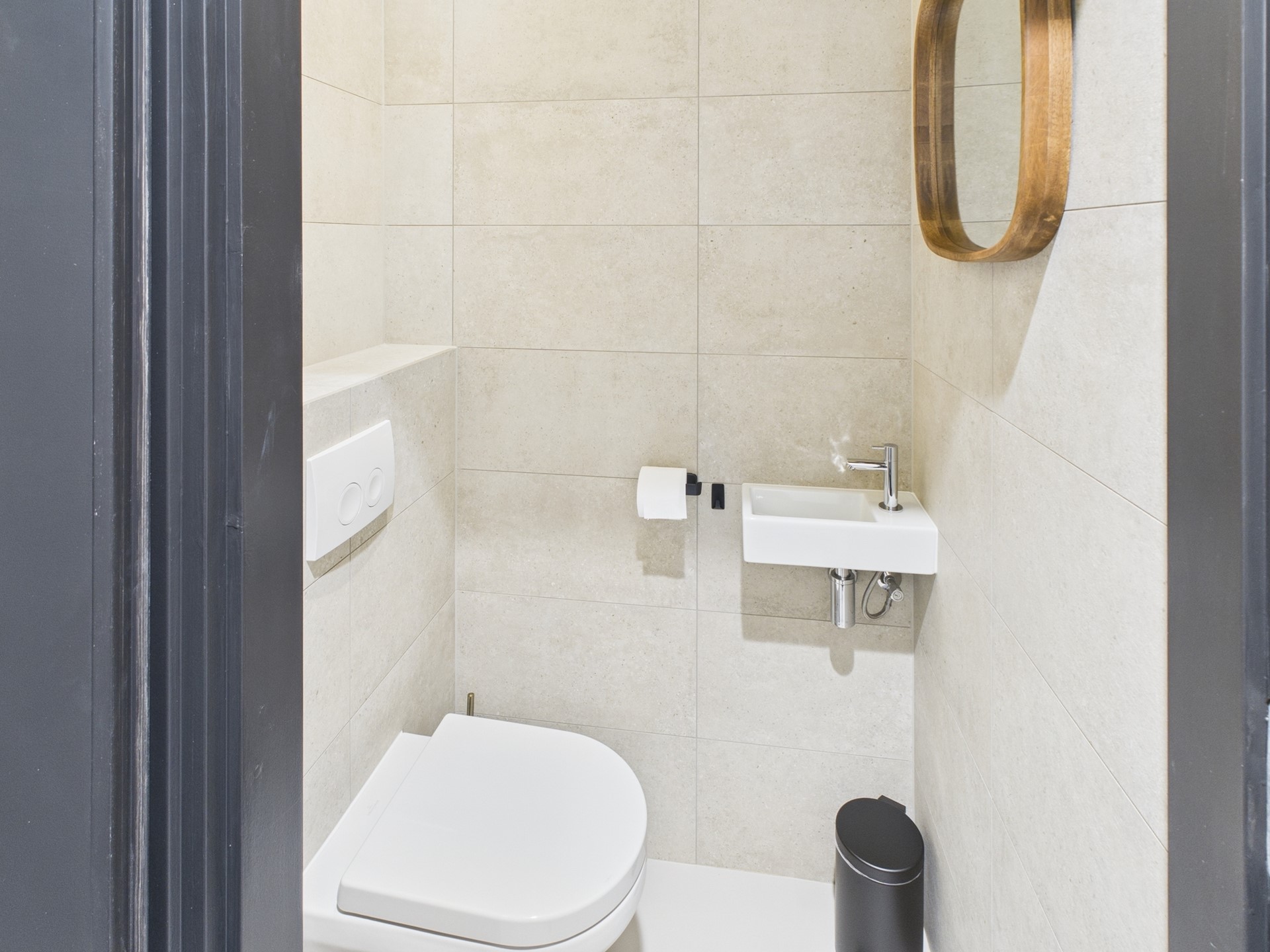 Wilt u ontspannen lunchen of even pauzeren? De gezellige keuken met zithoek biedt hiervoor alle ruimte. In de aangrenzende hal vindt u tevens twee toiletten en een praktische bergkast.