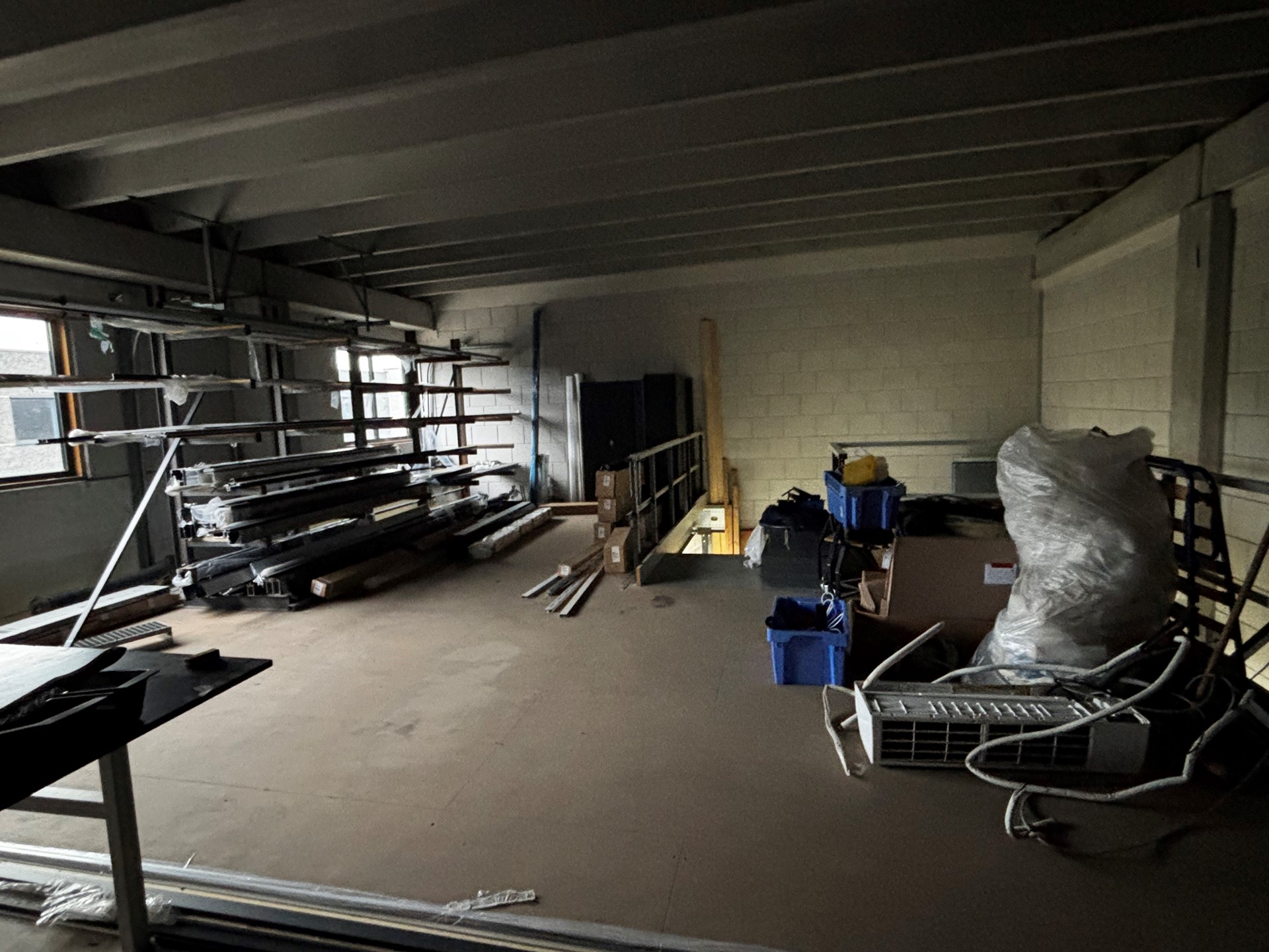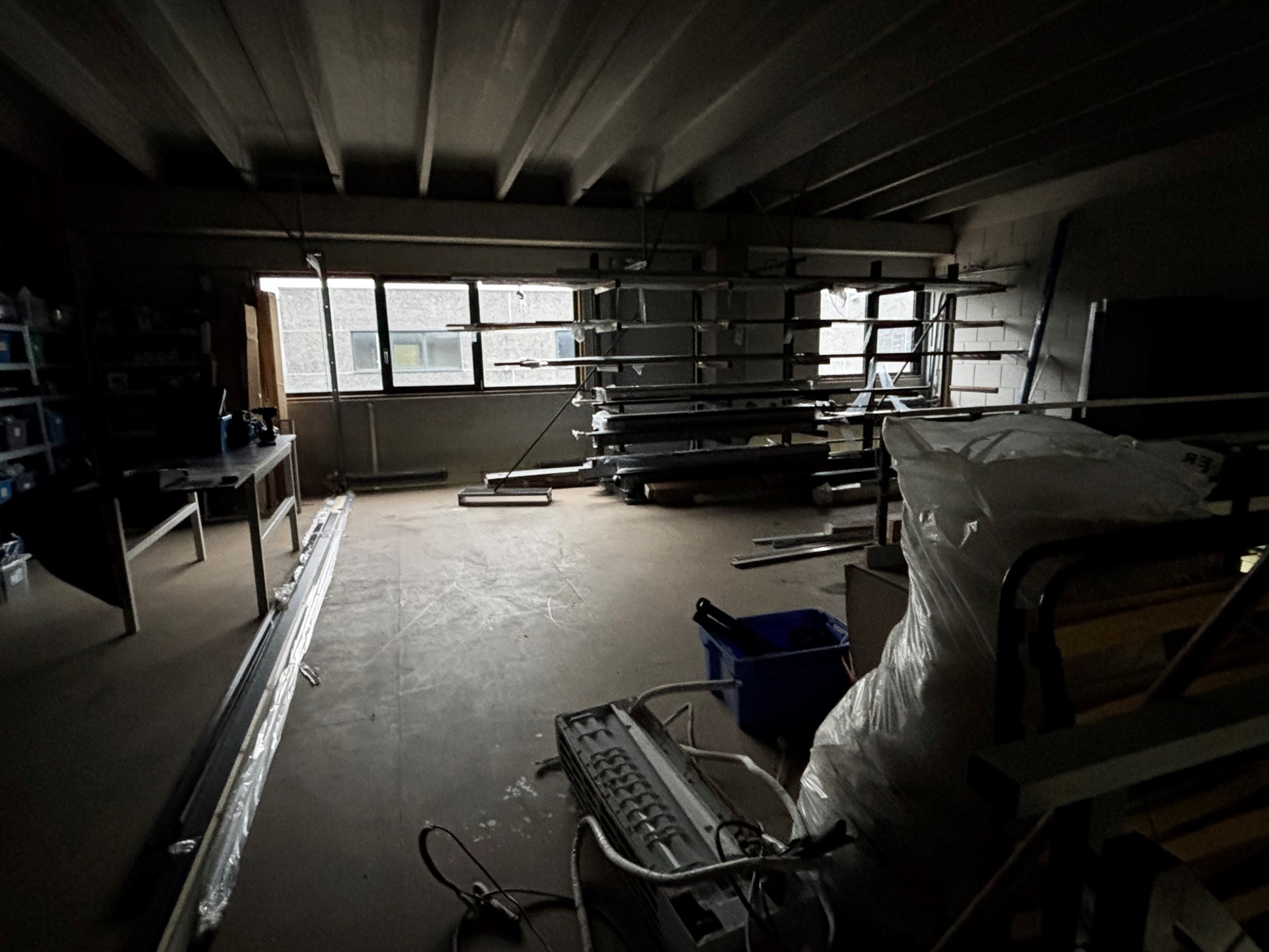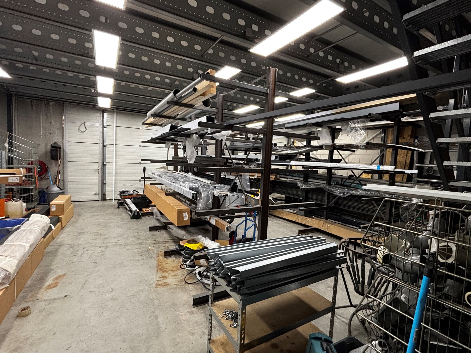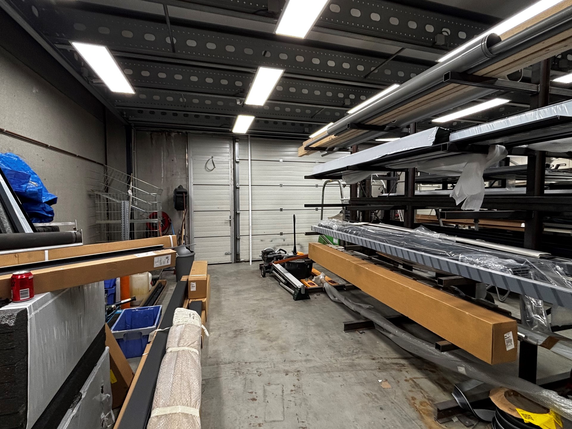 De unit beschikt over 2 sectionaalpoorten en een verdiepingsvloer.