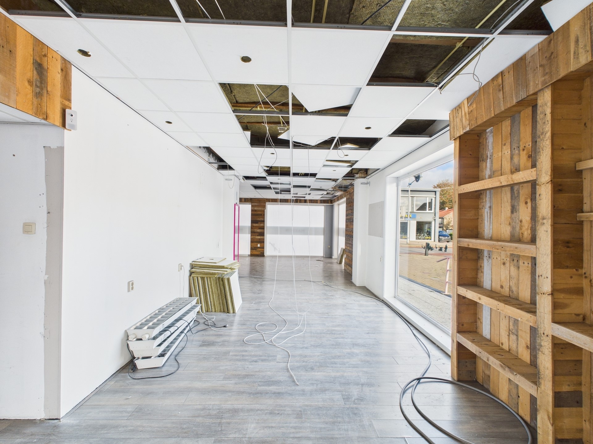 • Begane grond: ruime winkelruimte, verdeeld over twee secties, met aangrenzende kantine en keuken. Vanuit hier is tevens toegang tot het zeer ruime souterrain – ideaal als opslag- of werkruimte.