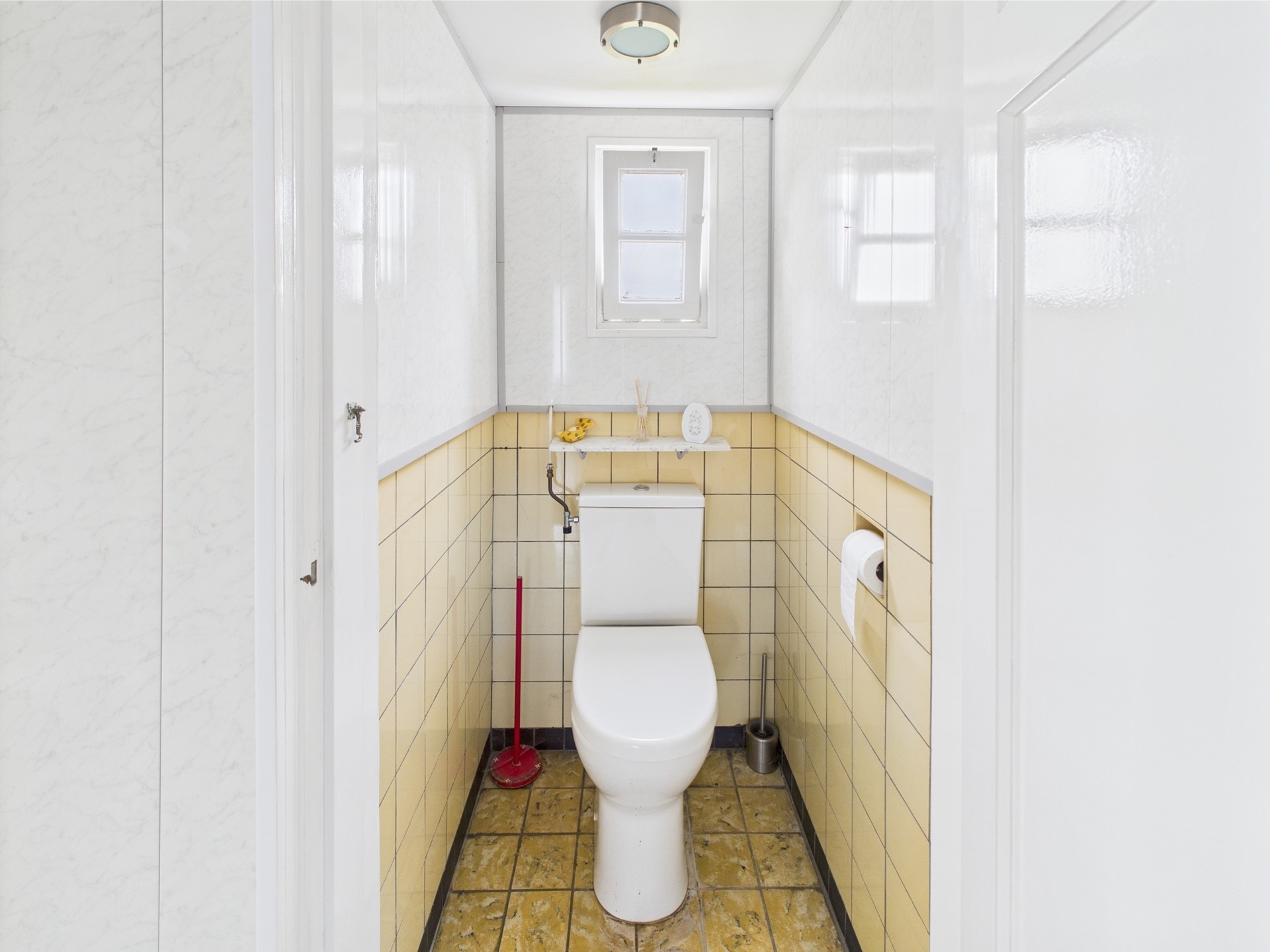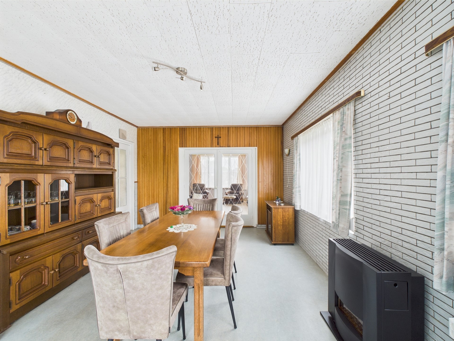 Inkomhal met opgaande trap, meterkast en toegang tot de droge kelder. Ruime woonkamer met en-suite deuren naar de ruime woonkeuken. Woonkeuken met hoek opgestelde keuken met koelkast en afzuigkap. Hal met toilet en badkamer met douche, wastafel en wasmachineaansluiting. Tussenhal welke ook gebruikt kan worden als kantoorruimte of extra slaapkamer.
