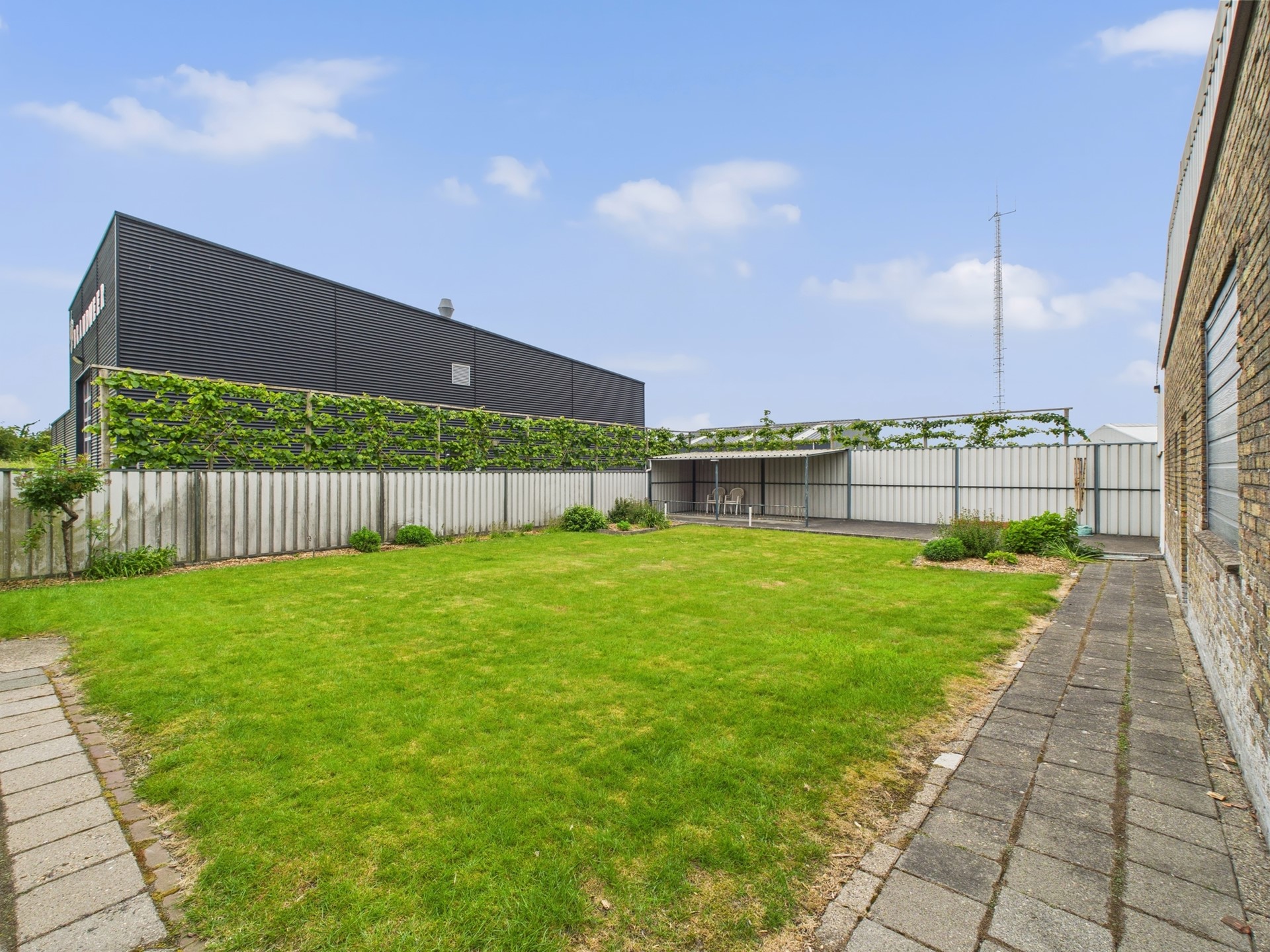 Ruime tuin met kleine berging in de naastgelegen loods.
