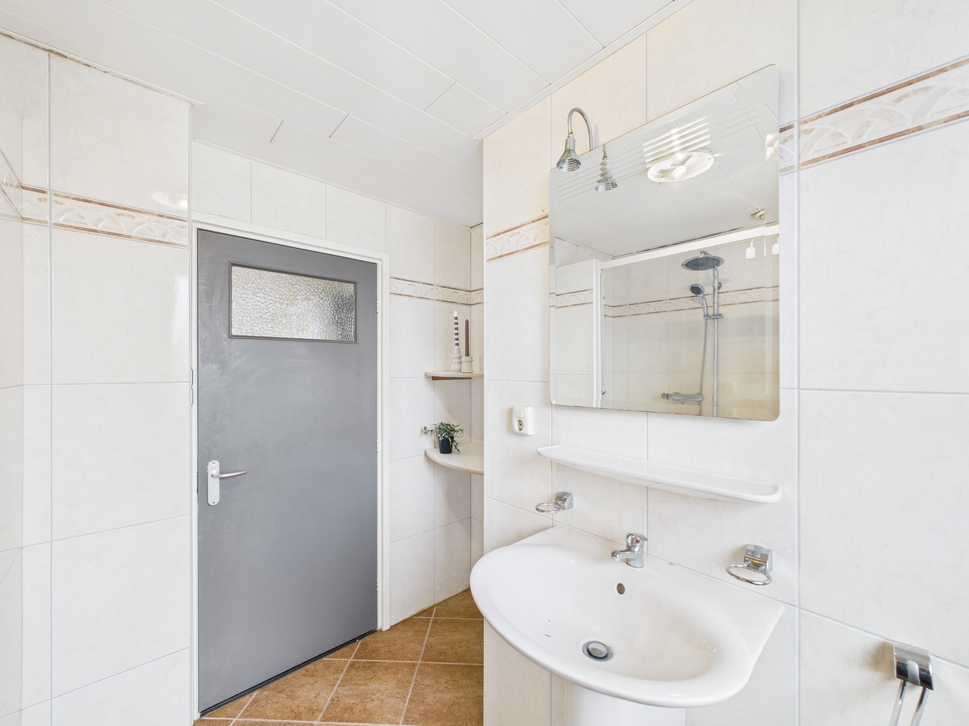 Op de eerste verdieping zijn de overloop, twee slaapkamers, een aparte toiletruimte en badkamer aanwezig. De badkamer is uitgerust met een douche en wastafel.