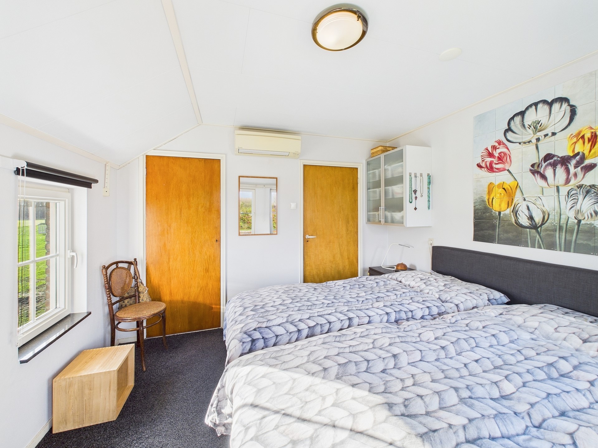 • De woning is voorzien van twee airco’s; één in de leefkeuken en één op de slaapkamer.