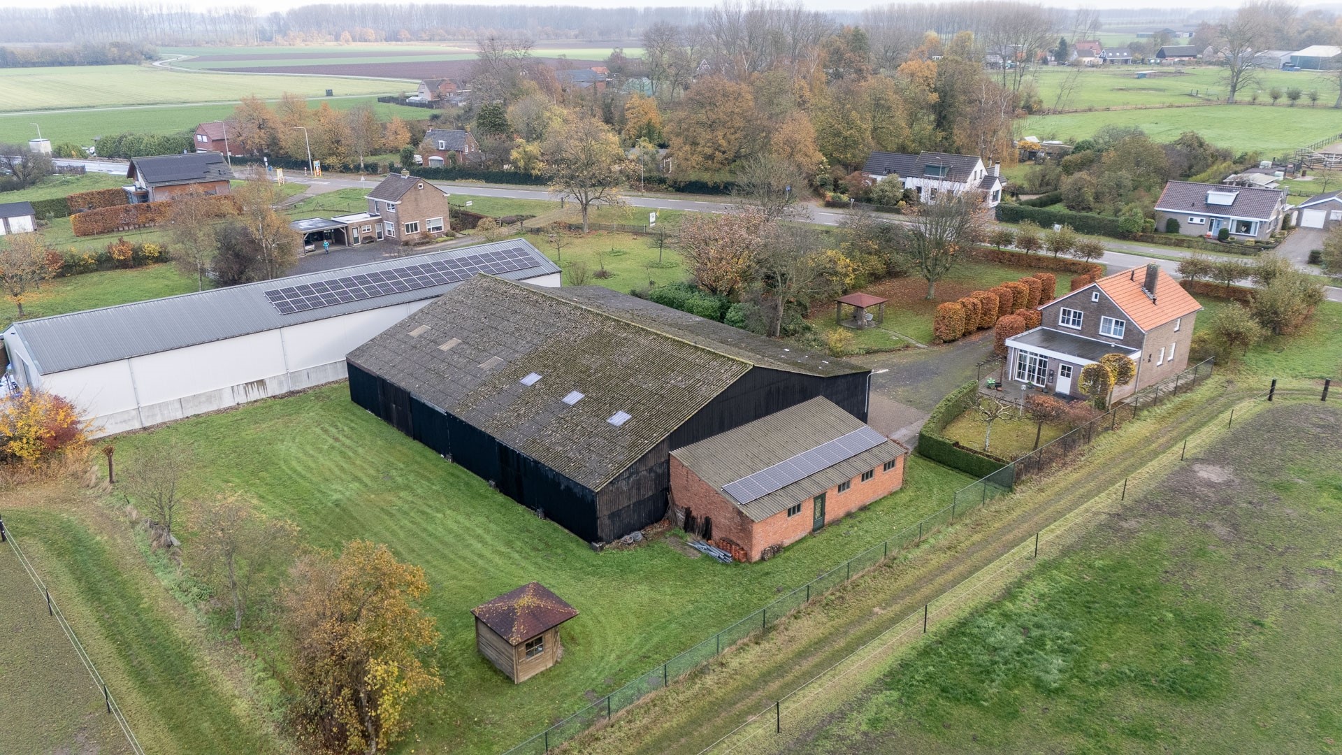 Naast de grote tuin beschikt de woning ook over een garage en een loods, ideaal voor hobby’s en als opslag. In de garage is een hefbrug aanwezig, deze blijft achter. De loods is verouderd en gedekt met asbesthoudende golfplaten.