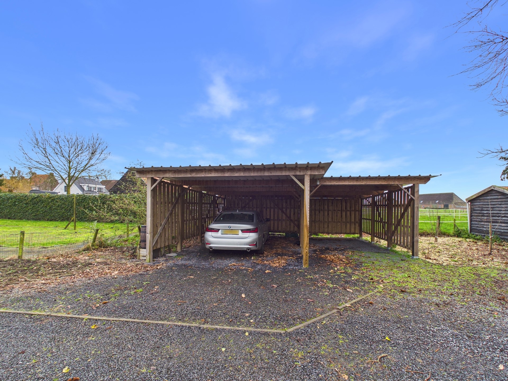 Via de achterzijde is het perceel bereikbaar en beschik je over een eigen oprit met een ruime carport en een vrijstaande schuur met openslaande deuren. Daarmee is er niet alleen veel bergruimte maar ook voldoende plaats voor het parkeren van een auto op eigen terrein.