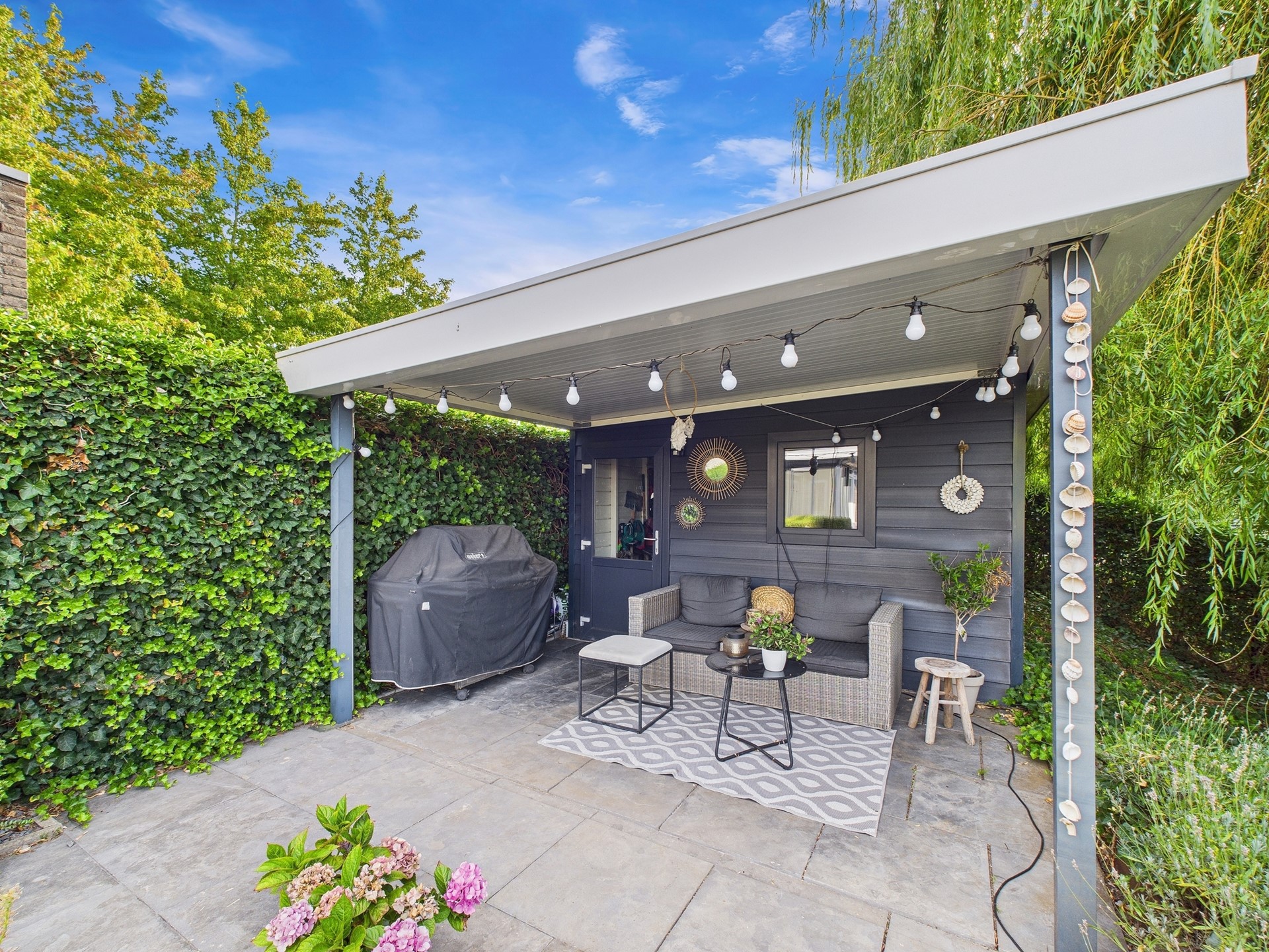 De fraai aangelegde tuin is gesitueerd op het Zuiden en beschikt over een tuinhuis, een aangelegd terras, een ruim gazon en verschillende zitplekken. In deze prachtige tuin kun je al je creativiteit kwijt en geniet je volop van het buitenleven. Aan het water bevindt zich een ruime vlonder, dit is een perfecte plek om na een lange dag heerlijk tot rust te komen. Genietend van de rust en het schitterende zicht krijg je hier gegarandeerd een vakantiegevoel.