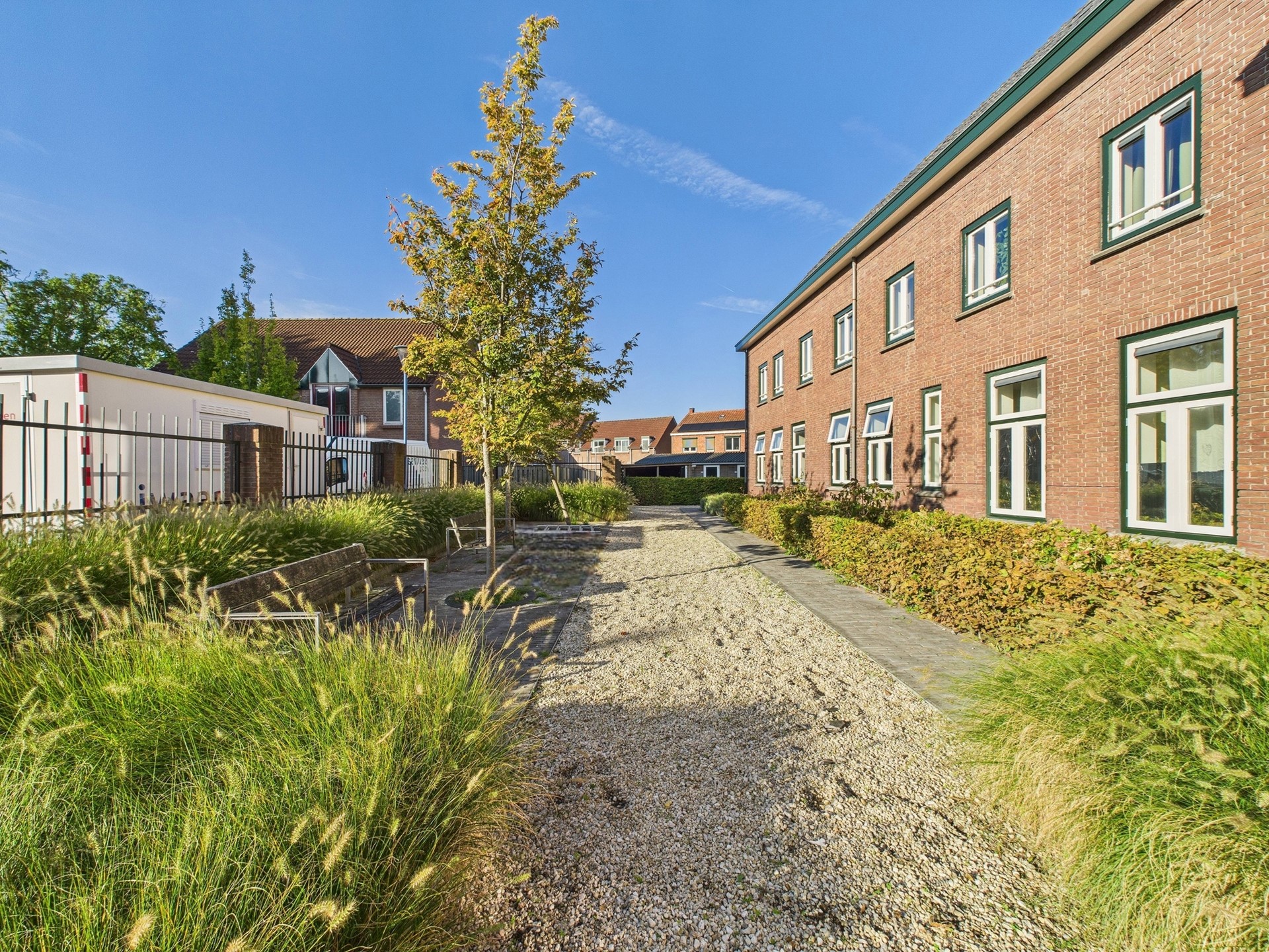 Rondom het gebouw ligt een prachtige tuin waar het in de zomer heerlijk vertoeven is.