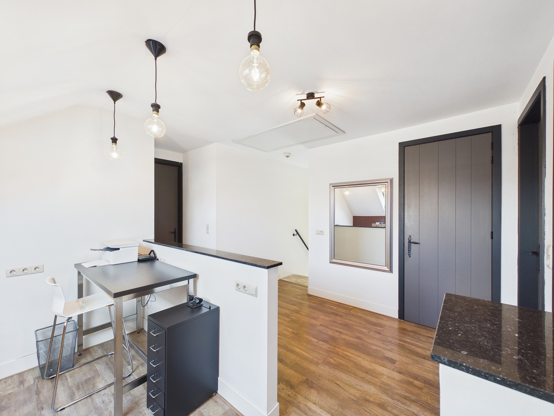 De aangrenzende multifunctionele ruimte is voor vele doeleinden geschikt. Dankzij de aanwezige wateraansluiting kan je hier perfect een praktijk- of salonruimte, kantoor, speelkamer of slaapkamer met sanitaire voorzieningen creëren. Daarnaast heeft deze ruimte een eigen ingang. De keuken, bijkeuken, gang en toiletruimte zijn voorzien van vloerverwarming.