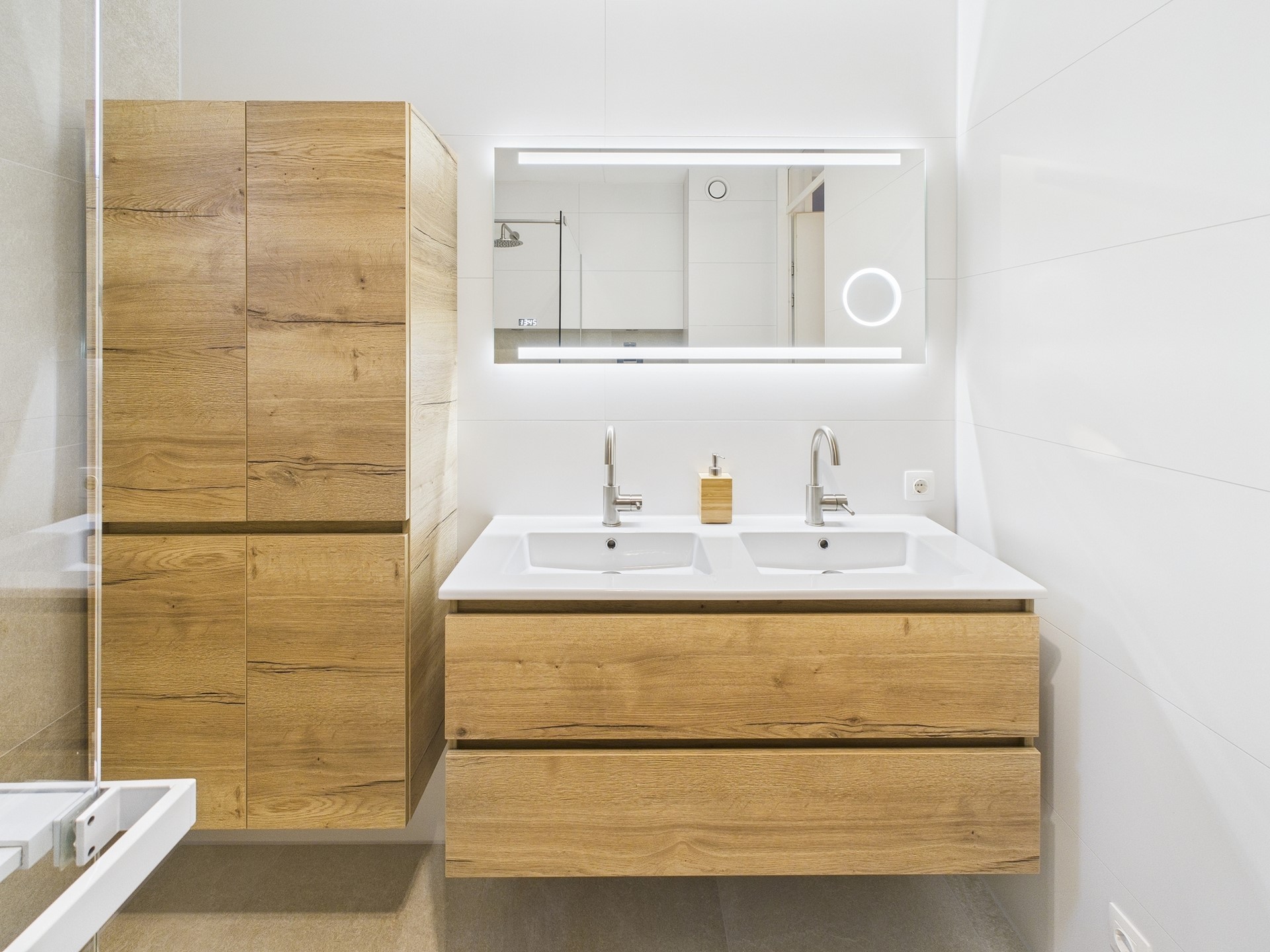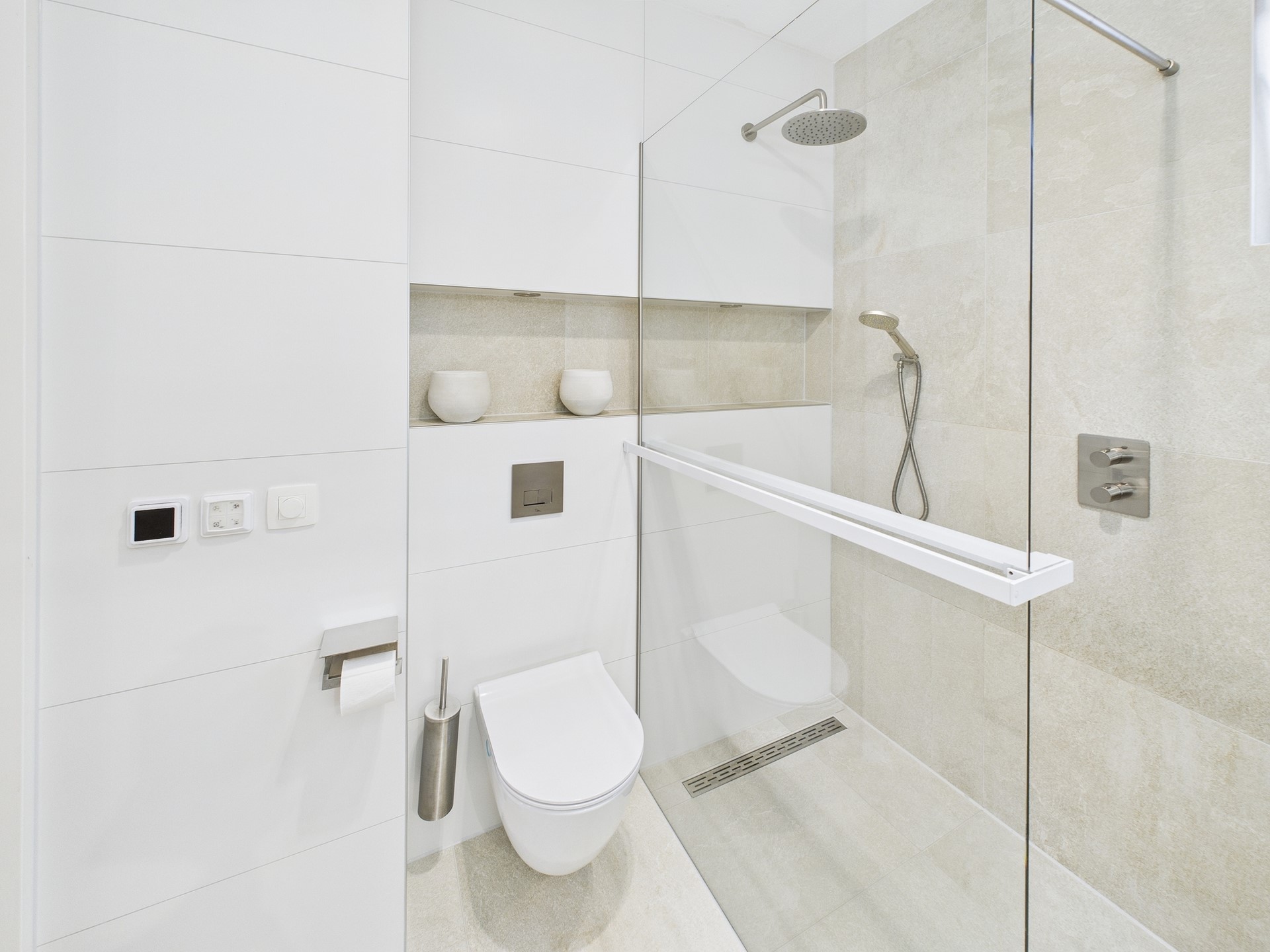 Overloop met toegang tot 3 ruime slaapkamers en de badkamer. De schitterende badkamer is van alle benodigdheden voorzien: Een royale inloopdouche, toilet en dubbele wastafels met bijpassend meubel. Daarnaast is er in de badkamer vloerverwarming aanwezig.