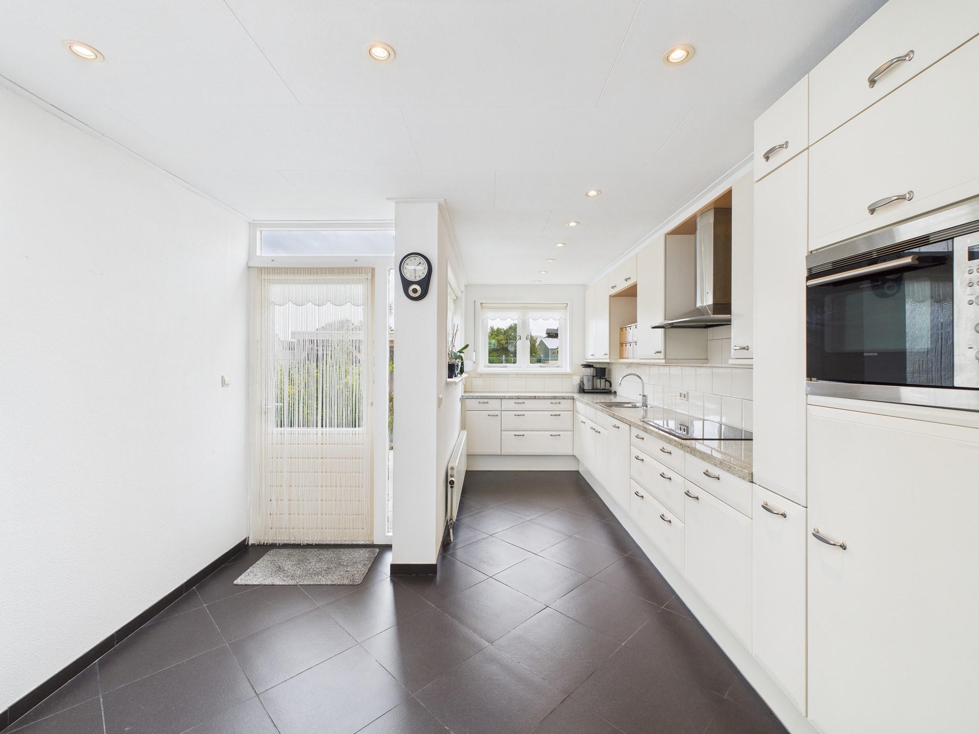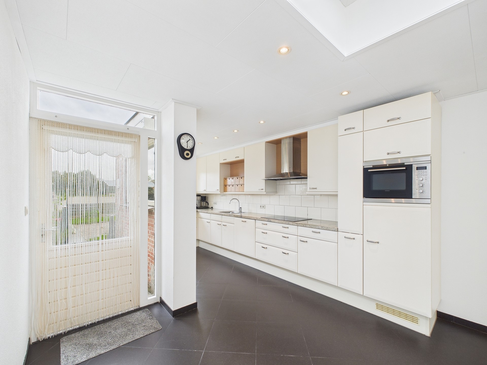 Via de inkomhal betreden we de gezellige woonkamer, afgewerkt met een nette laminaatvloer en gedeeltelijk voorzien van vloerverwarming. Aansluitend bevindt zich de ruime, aangebouwde woonkeuken. Dankzij de lichtkoepel is deze heerlijk licht en de keuken is uitgerust met alle benodigde inbouwapparatuur (waaronder een vernieuwde vaatwasser en kookplaat). Achter de woonkamer bevindt zich de bijkeuken met wasmachineaansluiting, bergruimte en een toiletruimte. Vanuit de bijkeuken is er toegang naar de schuur.