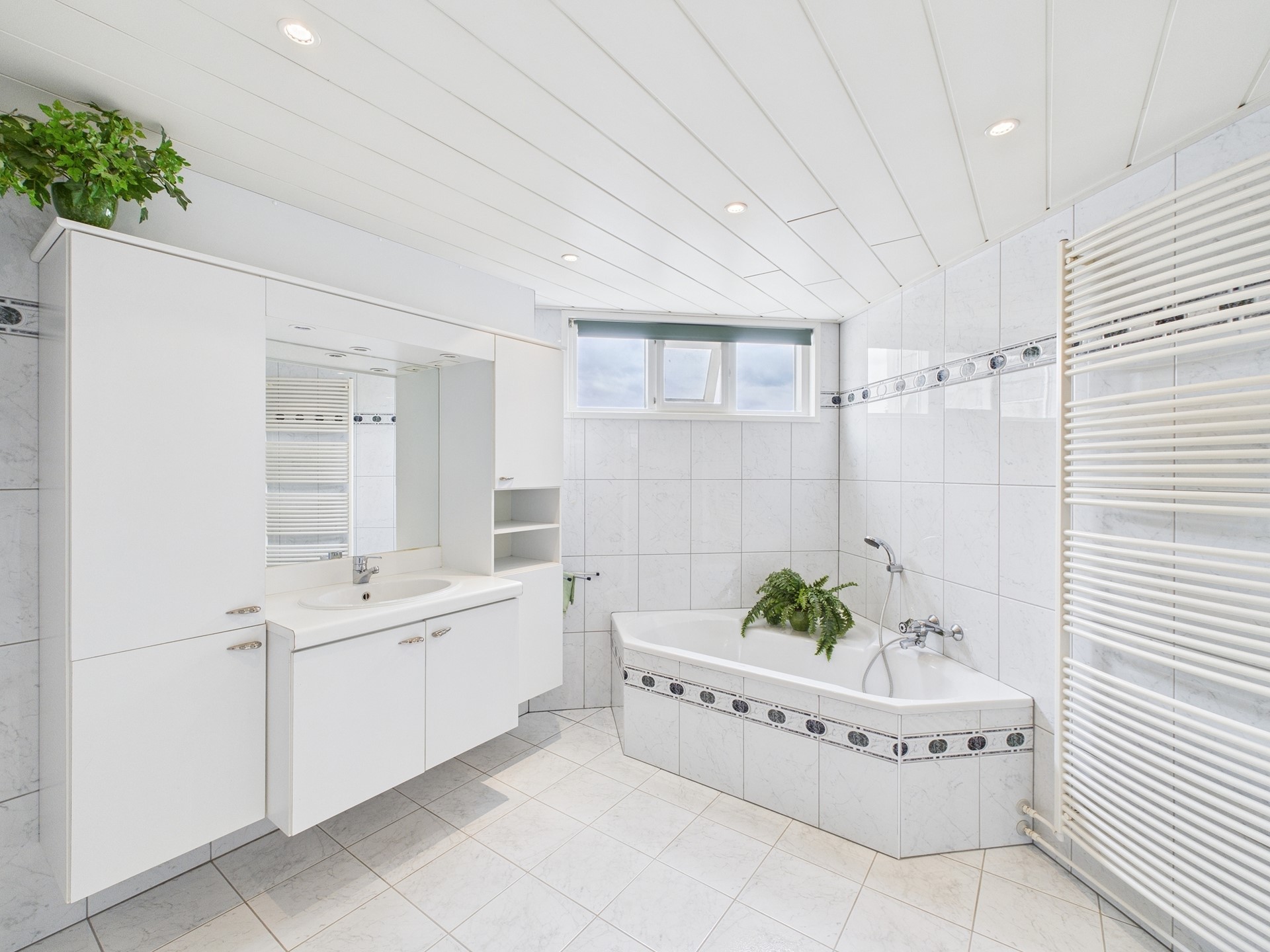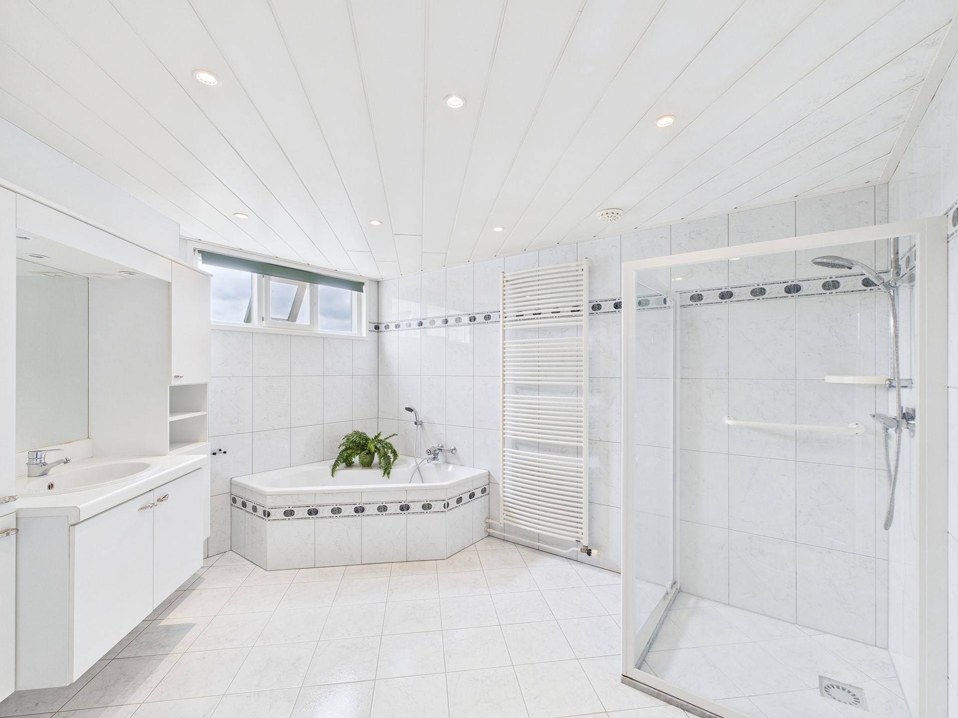 Op de eerste verdieping bevinden zich de overloop, drie slaapkamers en de badkamer. De ruime badkamer is voorzien van vloerverwarming en beschikt over een douche, ligbad, toilet en een wastafelmeubel.